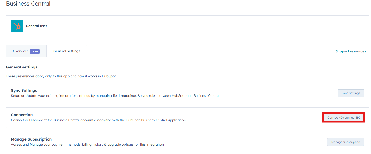 To disconnect HubSpot from the Business Central app, follow these steps directly within your HubSpot account.